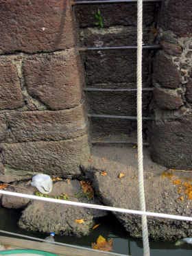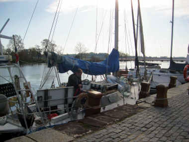 De cette manière, nous pouvons également continuer de profiter de la seule échelle du quai. Car, contre le haut mur de pierre, point de ponton flottant. Et les seuls échelons en acier scellés dans ce mur sont à la place qu’occupe Vent de Folie.