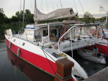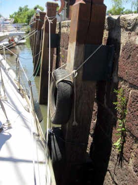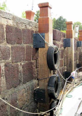 Le catamaran de Marco est déjà amarré à Vent de Folie. Mais notre "camion", solidement amarré aux gros poteaux de bois et protégé par ses belles défences Michelin, peut en supporter bien davantage.