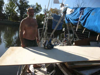 Les grandes plaques de contreplaqué qui envahissent le roof depuis notre départ de Tigre (Argentine), vont enfin servir.