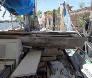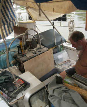 Ce coffre est un exemple probant pour expliquer le temps que nous passerons à ces travaux. Chaque fois que nous devons démonter quelque chose dans ce bateau, il en est ainsi puisque rien n’est démontable. C’est aussi une des raisons pour lesquelles nous souhaitions tout refaire.