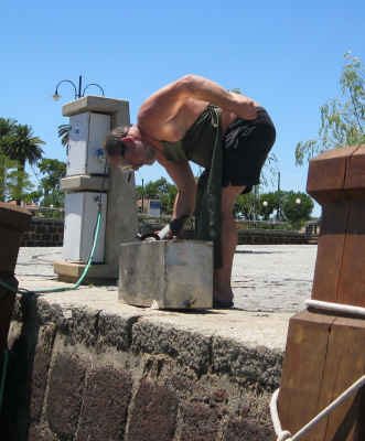 Etant de nouveau 3 à bord, devant profiter quelque peu des visites d’amis et des festivités, mais surtout, alors que tous autour de nous sont en vacances et que la température avoisine les 45 degrés Celsius, nous trouvons finalement que nous avons eu beaucoup de courage !