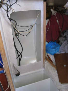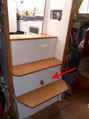 Cette niche est en acier et comporte surtout un renfort pour le treuil de la dérive, placé juste dessus, sur le pont du bateau. Ce treuil devant relever une dérive pesant 1 tonne 800, il va sans dire que cette partie a intérêt à être en bon état.- dans la partie basse, il s’agit du puit de dérive (partie immergée dans laquelle remonte notre dérive).