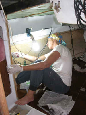 Cette cabine est loin d’être terminée. Et nous allons devoir rapatrier tout ce qui est sur son catamaran.