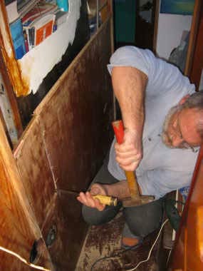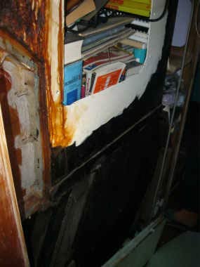 La paroi en bois, qui sépare le bateau en 2 parties, cache en fait une partie très importante, en acier :