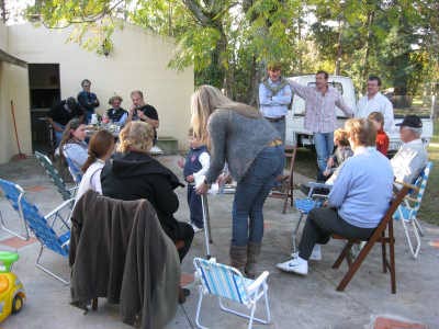 Une petite surprise : Carmen, grâce à qui je peux avoir du linge propre sans me congeler les mains durant l’hiver, vient nous offrir un pain maison tout frais, tout chaud, confectionné par sa maman.