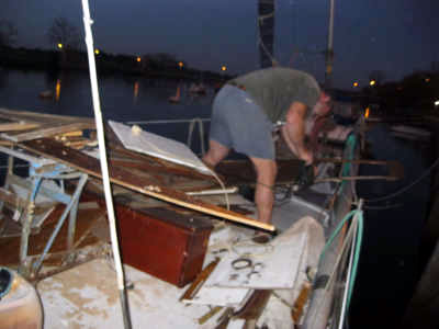 Pas une mince affaire non plus, vu l’état du pont malgré notre grand nettoyage