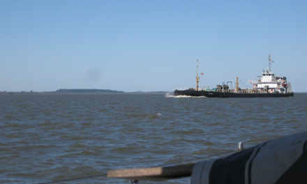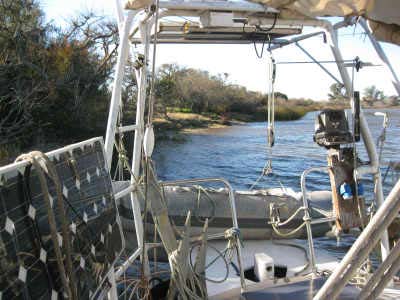 Arrivés à l’entrée du rio Gualeguaychu, alors que nous apercevons la Prefectura, but de ce voyage, nous nous "plantons" au beau milieu du chenal.