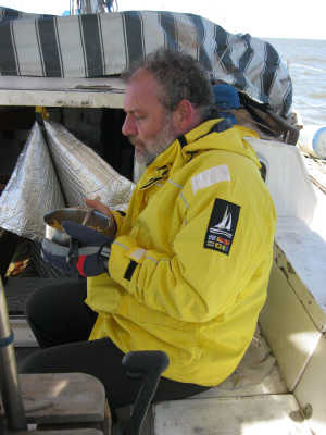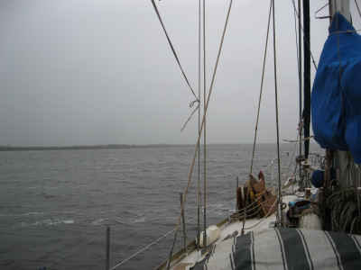 Nous sommes donc coincés sur le banc de sable et le vent nous fait fortement gîter.