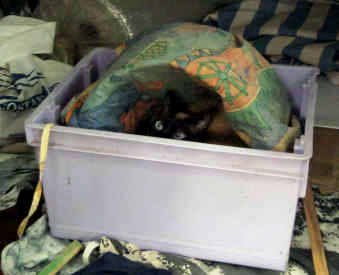 Dès l’extinction des machines, Minette sort de sa cachette et se "scotche" devant le poêle.