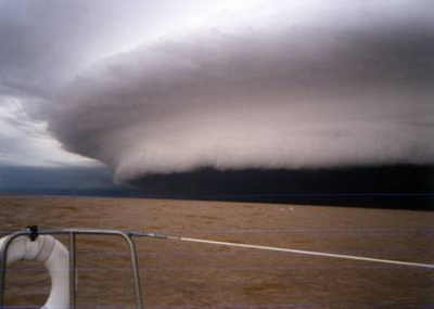 | Voici des photos trouvées sur Internet qui vous donneront une idée de ce que l’on peut éprouver sur un voilier lorsqu’on se trouve au beau milieu d’un Pampero. | ||||