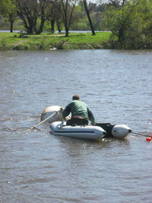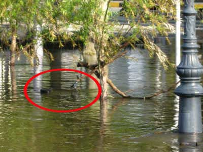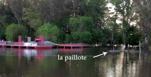 Rémy scrute alors régulièrement le quai, plus précisément l’arbre près duquel est (ou était ?!) son vélo (disparition subaquatique dont tout le monde parle à Mercedes - qui croirait qu’il y à 40 000 habitants !). 17 heures…le guidon émerge enfin. |