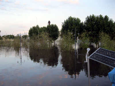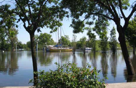 Ce vent provenant de la terre, le fait d’être sur un petit rio ne nous épargne pas et nous en subissons fréquemment les effets, durant l’été, à Mercedes. Comme les tornades au Sénégal (aux effets très similaires), nous les sentons désormais venir. C’est alors le branle-bas de combat pour tout attacher sur le pont et vérifier les amarres. Mais ce vent est si soudain qu’il nous arrive encore de terminer trempés comme des soupes, le visage fouetté par la pluie. Mais qu’importe ! Pour nous, l’important est que nous ne revivions plus jamais « ça » en mer. Notre arrivée à La Paloma (cf. Uruguay en avril 2009) restant, et pour longtemps j’espère, l’un de nos pires moments de navigation. |