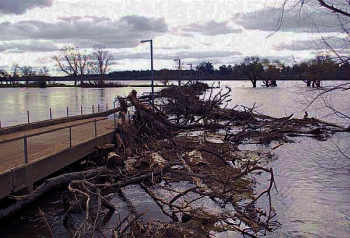 | De nombreux troncs d’arbre étaient jusqu’alors coincés contre le pont. | ||||