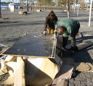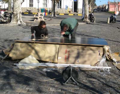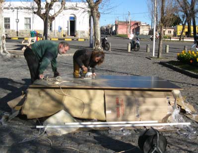 Nous sommes alors prêts à monter le plan de travail. Nous passons commande à Montevideo. |
