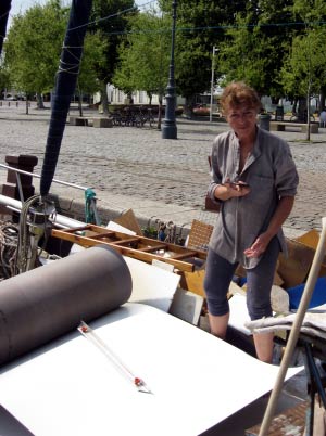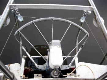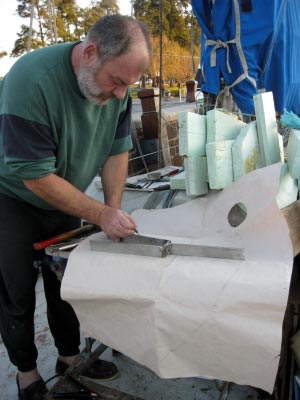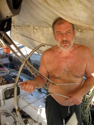 Notre secteur de barre, "bouffé" par la rouille, s’étant détaché lors de notre dernier voyage en Argentine en avril dernier, Rémy a décidé de le refaire complètement, en inox cette fois. Une journée à Montevideo et nous revenons avec, entre autres boulons ou tiges filetées, de lourdes barres d’inox dans le sac à dos. |