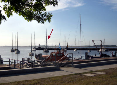 Chargés d’une partie de nos bagages - les autres, pour plus de facilité, ayant passé la nuit dans l’agence des bus de Juan Lacaze - nous descendons dans l’immense barque du port pour rallier la terre (à savoir que l’annexe ne pouvant rester le long du quai pendant tout ce temps, elle nous attendra solidement amarrée sur le pont du voilier).