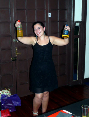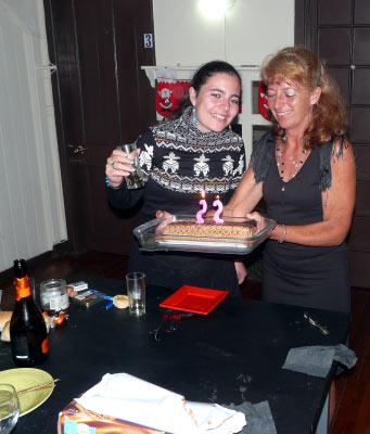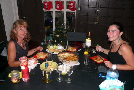 Nous avions déjà squatté la douche de notre fille. Nous allons cette fois squatter la cuisine commune. Nous transportons nos achats dans la résidence voisine, heureusement désertée par presque tous les locataires et donc à peu près rangée. Et nous fêtons Noël et les 22 ans de notre fille chérie comme il se doit. |