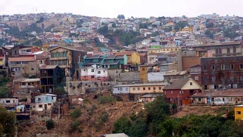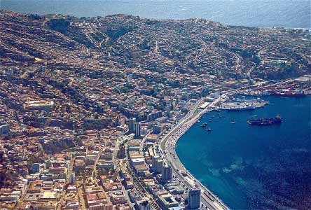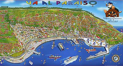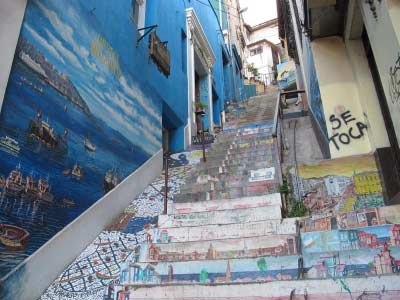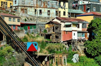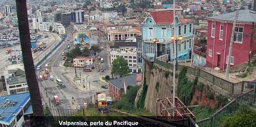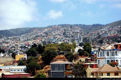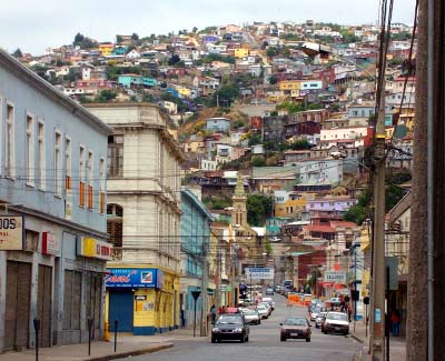 | Valparaíso est également connue pour ses cerros (ou collines) qui entourent la ville et offrent une vue spectaculaire sur le centre ville et sur la mer. | |||