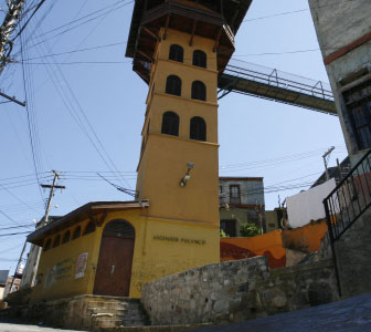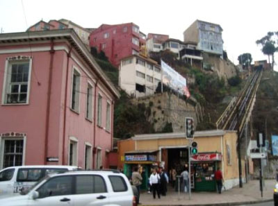 Puis nous arrivons au pied du funiculaire Artillería permettant l’accès au cerro du même nom, ainsi qu’aux cerros Arrayán, playa Ancha et Mecilla. |