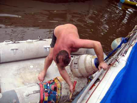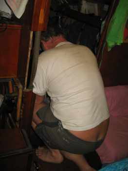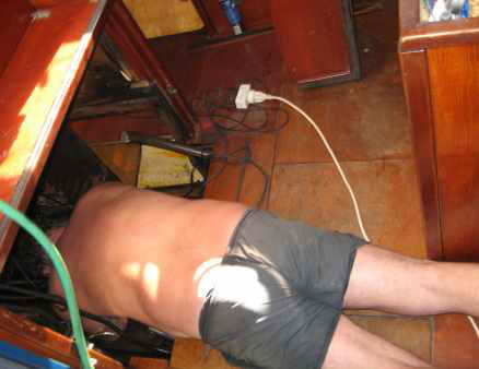 Je dis « à peu près » car, « vite fait » et « mal fait » allant souvent de pair, Rémy devra reprendre certaines soudures qui laissent passer l’eau. Chose très embêtante sur un bateau ! Et, si Adrian est très perspicace quant aux défauts de ses congénères et nous fait souvent bien rire à ce propos, Carlos, comme la plupart des Argentins, est très susceptible. |