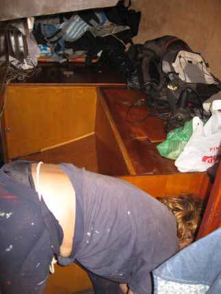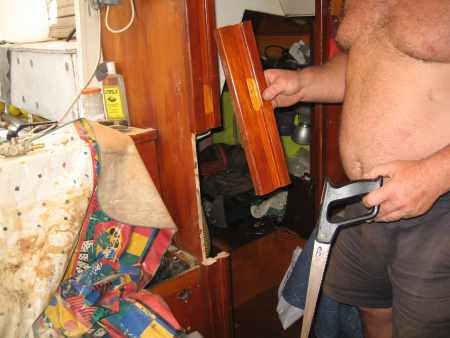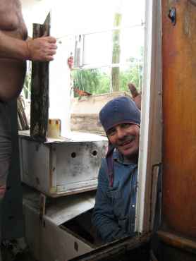 Heu…je crois qu’il va falloir couper l’autre cloison !... Finalement, notre Hercule de service tente d’écarter les 2 cloisons. |