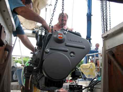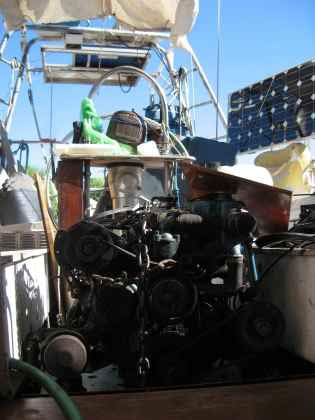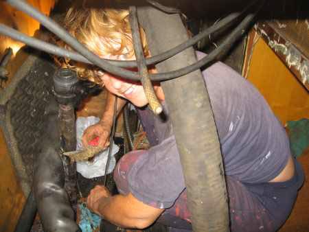 Depuis mardi, Adrian passe de longues heures dans le compartiment moteur. Il est 22 heures 40 lorsque le joli bruit de notre nouveau moteur se fait entendre. Nous allons pouvoir partir l’esprit serein. |