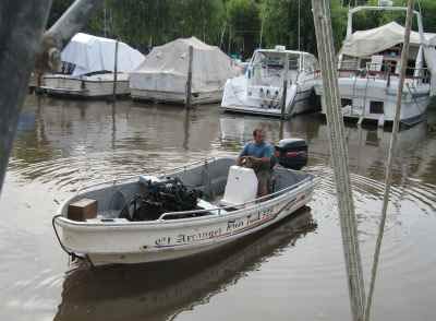 Dès 8 heures, Carlos arrive avec la première lancha et se met au boulot.