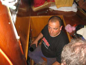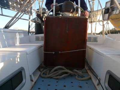 La veille du départ, le carré sera encore envahi de tout le "barda" du coffre moteur enlevé pour faire place à Adrian.