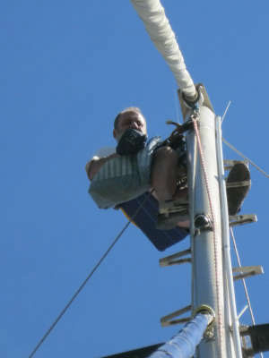 Rémy poursuit donc ses exercices de montée et descente des 16 mètres de notre mât.