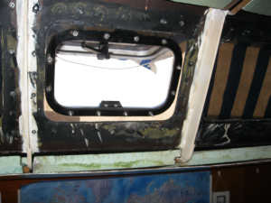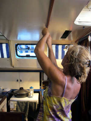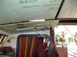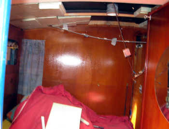 Puis nous nous attelons au démontage des plafonds et vaigrages des hublots.