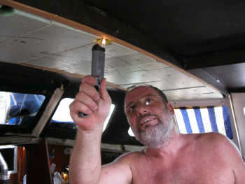 Dès la nuit tombée, je sors sur le pont et Rémy se met aux commandes.