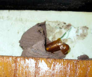 Parenthèse : Au Sénégal, nous avions très souvent la visite de ces curieuses et énormes mouches maçonnes qui transportent de grosses boules de terre et aiment à faire leur nid dans les coffres ou étagères.