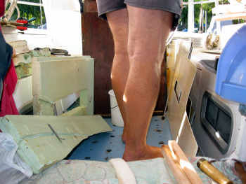 Quant à nos vieux et vilains vaigrages des hublots, un coup de scie circulaire pour prendre moins de place et ils se joindront au nombreux autres objets mis au rebut dans les poubelles du club.