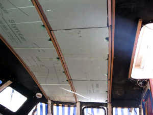 Il nous restera, après le câblage électrique que Rémy tient à refaire intégralement, à poser un film isolant supplémentaire sur l’ensemble.