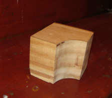 Une fois ces 64 jolis dès de bois coupés, Rémy fabrique un guide afin de les "passer" à la défonceuse et obtenir ces jolis angles dont nous avions rêvé… un peu trop vite.
