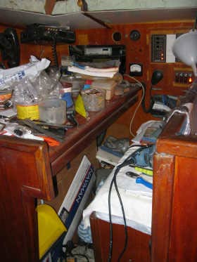 Nous y installerons les instruments de navigation ainsi que la table carte, en faisant en sorte de pouvoir nous asseoir devant, ce qui, aussi bizarre que cela puisse paraître, n’est pas du tout le cas de la table à carte actuelle.