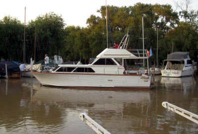 Or ce matin, notre voisin - celui que nous avons surnommé "El peñazo" (l’emmerdeur-orthographe en espagnol sous réserve, ma correctrice n’étant plus là ) qui partage avec nous, de bien mauvaise grâce, le petit ponton qui nous relie à la terre – s’en est allé pour une journée de pêche sur le Rio de la Plata - Beurk !