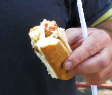 Voici pour moi l’occasion de vous montrer à quoi ressemble un hot-dog argentin, appelé « pancho » et dont les Argentins sont très fiers, comme de beaucoup d’autres choses d’ailleurs (la mauvaise langue a encore frappé !!!).