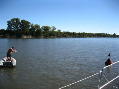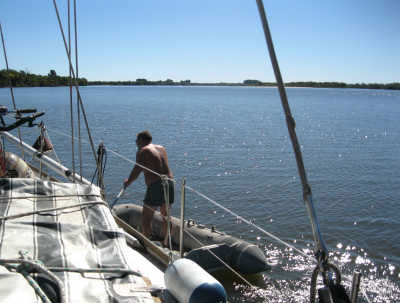Malgré notre dérive relevable et un balisage correct dans les passages délicats, nous talonnons un nombre incalculable de fois et craignons parfois voir le câble de notre dérive se pulvériser.