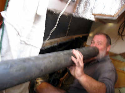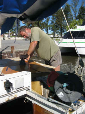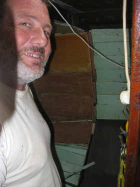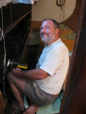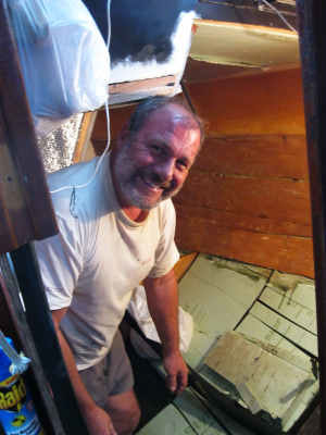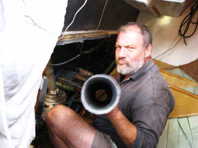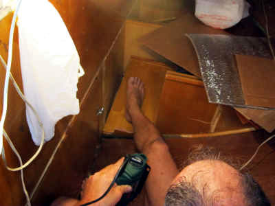 Tout à sa joie de faire de la place, il a même failli ôter le tuyau de la pompe de cale.