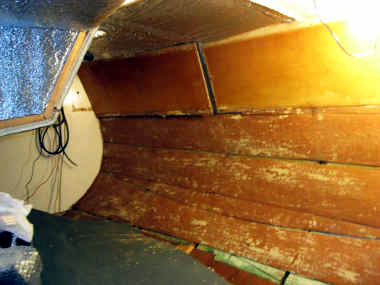 A l’entrée de cette cabine, la coque étant très ronde, pas moins de 16 plaques de 10 cm de large ont été nécessaires.