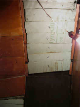 Pour ceux qui se poseraient la question (je sais qu’il y en a. Et je sais même qui !!!), à défaut d’avoir pu les démonter, nous laissons pour l’instant les 2 morceaux de cloison des anciens coffres qui nous serviront de base pour les futures mesures.