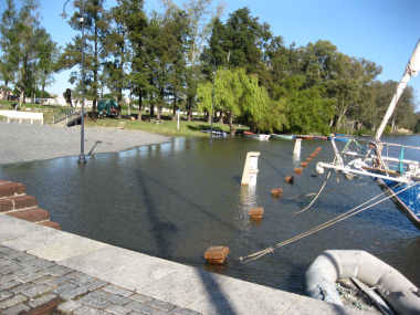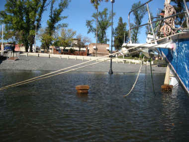 loin du quai afin de ne pas le retrouver accroché aux poteaux ou posé à sec, sur la petite place, pour un temps indéterminé. Car ici, point de grue !