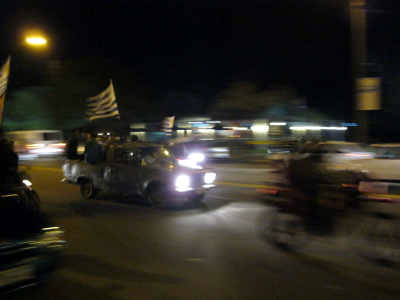 Tous les habitants sont dehors et brandissent le drapeau uruguayen à grand renfort de cris et de coup de klaxon.