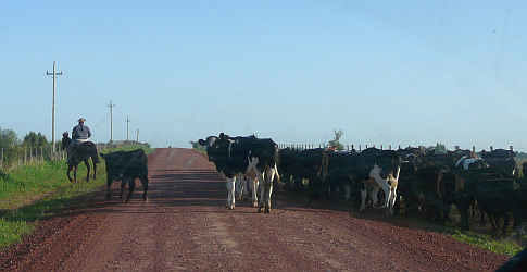 A l’approche de Saca Chispas, nous croisons des gauchos qui guident les vaches, probablement vers le lieu de la fête.