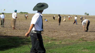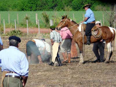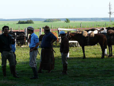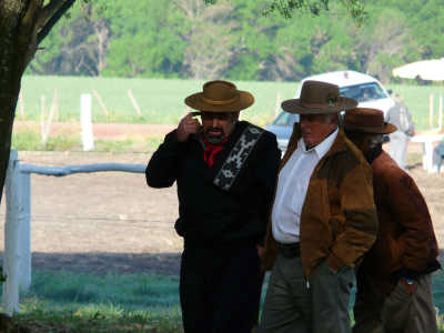 Nous observons les villageois occupés à préparer le campo pour la fête et les gauchos, certains vêtus de la tenue traditionnelle, tous fiers de participer à l’évènement.