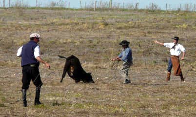 Les gauchos sont en place pour tenter de les capturer au lasso.