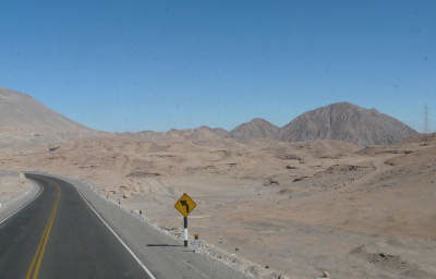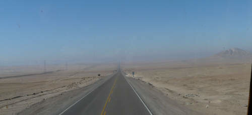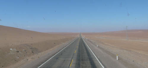 Nous traversons le désert péruvien avec un paysage couleur sable à perte de vue.
