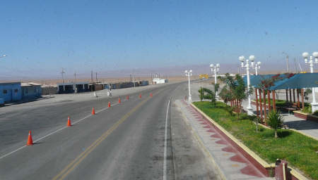 Environ 1 heure plus tard, nous sommes sur le parking de la gare d’Arica, au Chili.