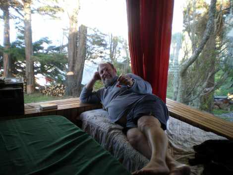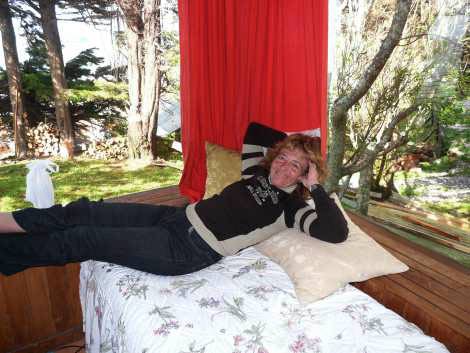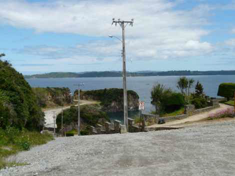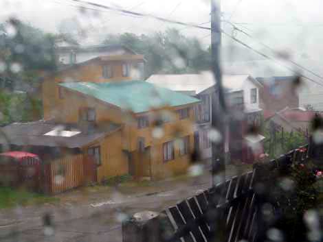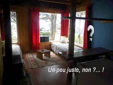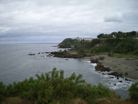 | Nous quittons donc notre chaleureux petit logement du centre ville et prenons possession de nos nouveaux quartiers à « Las Golondrinas », près de la plage Arena Gruesa, sur les hauteurs d’Ancud. | |||